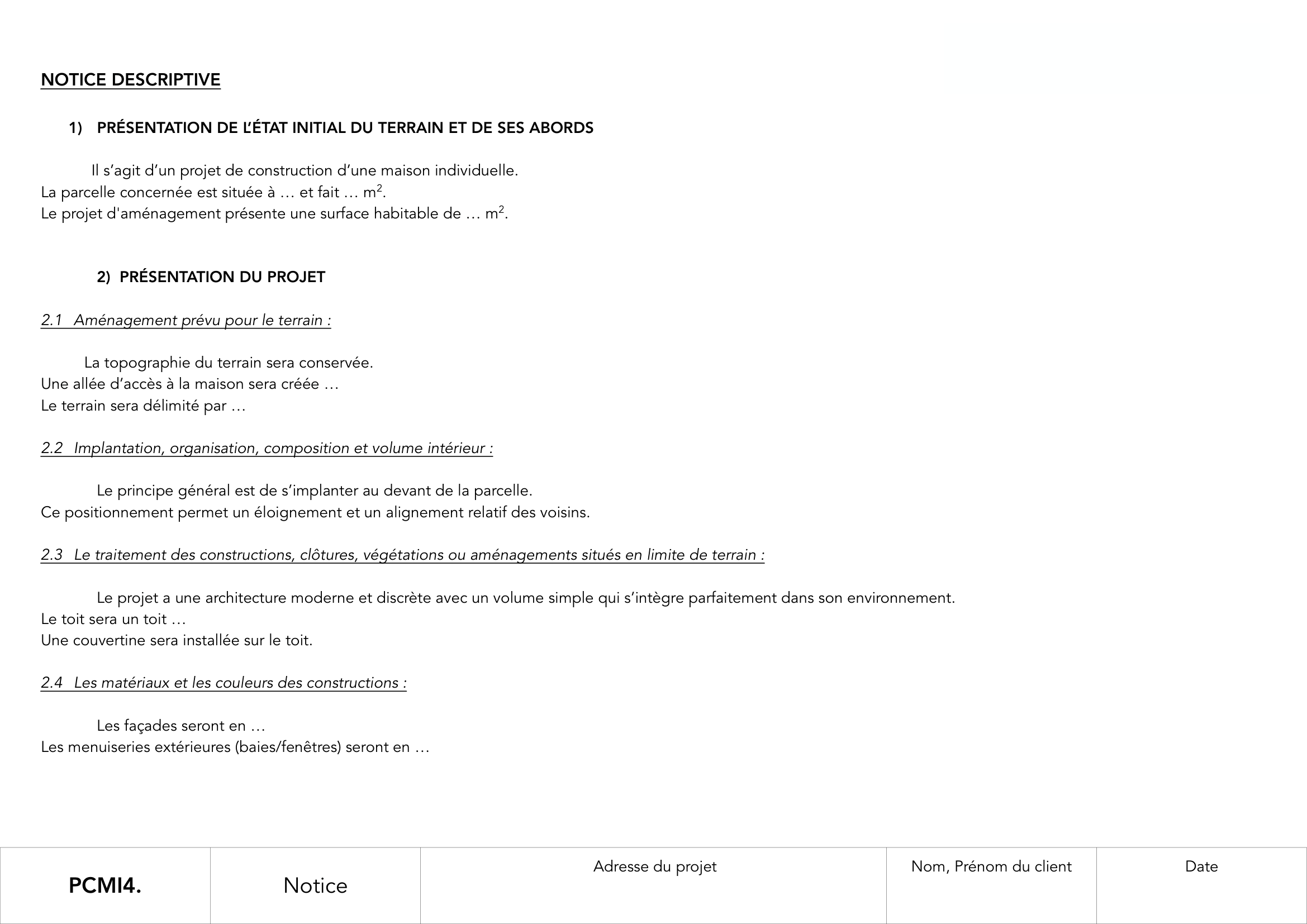 EXEMPLE DE PERMIS DE CONSTRUIRE